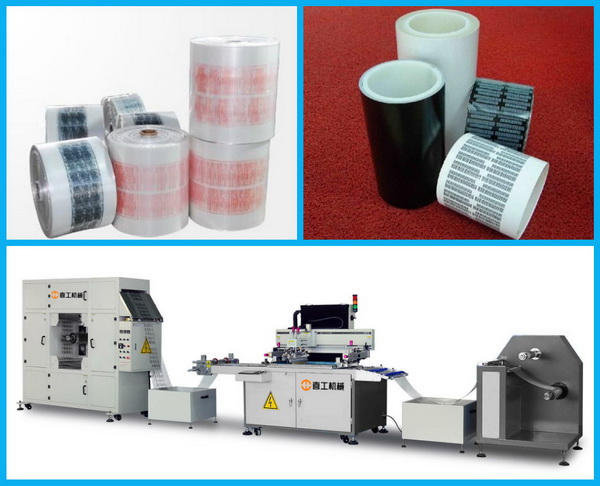 該機(jī)廣泛用于PET、PVC 、轉(zhuǎn)印紙(膜)、地暖膜、地?zé)崮ぁ㈦姛崮ぁ⒒垺⒈∧ぁ懓濉⑷嵝跃路板、手機(jī)按鍵、3M膠、膠水、薄膜開關(guān)、商標(biāo)鐳射、刮刮卡、不干膠標(biāo)貼、桶裝紙、織帶、鋁箔、銅箔等卷筒材料的絲網(wǎng)印刷。